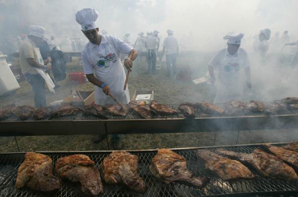 Το μπάρμπεκιου άρχισε αμέσως μετά τα μεσάνυκτα και οι ψήστες στέκονταν ο ένας δίπλα στον άλλον επί 14 ώρες για να αναποδογυρίζουν και επιβλέπουν το κρέας κατά μήκος της τεράστιας σχάρας.