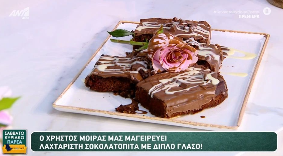 Ο Χρήστος Μοίρας μας μαγειρεύει λαχταριστή σοκολατόπιτα με διπλό γλάσο.