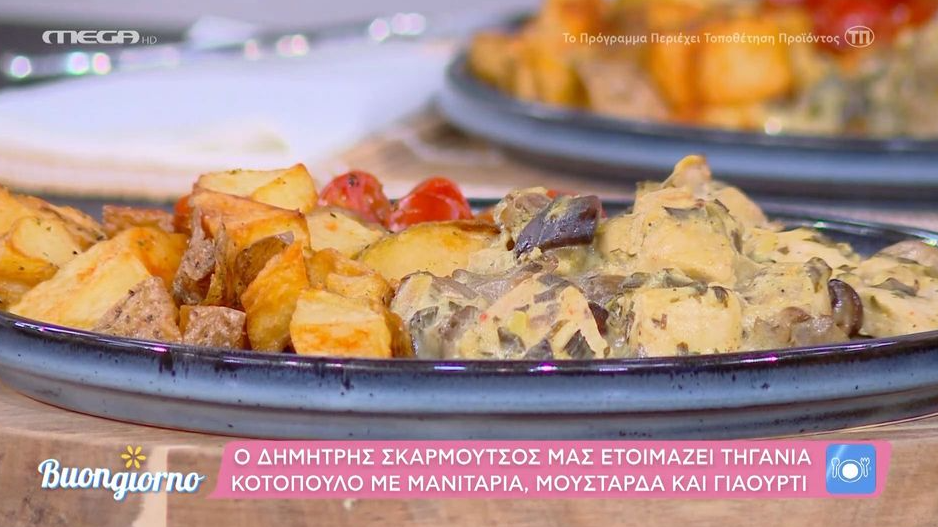 Ο Δημήτρης Σκαρμούτσος μπήκε στην κουζίνα της εκπομπής του MEGA Buongiorno, παρέα με τη Φαίη Σκορδά και μας έδειξε μια συνταγή για τηγανιά κοτόπουλο με μανιτάρια, μουστάρδα και γιαούρτι.