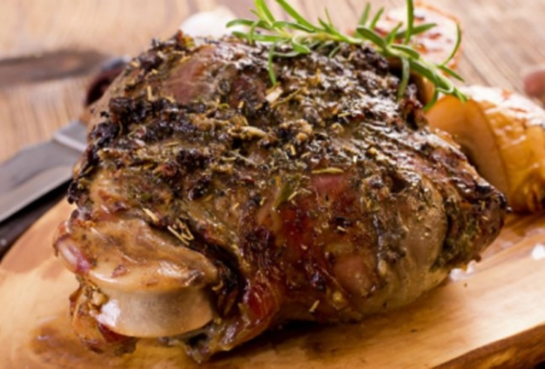 2. Πλένουμε το κρέας και το στεγνώνουμε καλά. Το κόβουμε σε τρία-τέσσερα μεγάλα κομμάτια ή το αφήνουμε ολόκληρο. Το αλείφουμε με το ελαιόλαδο -όχι περισσότερο από 3-4 κ.σ.- και το τρίβουμε καλά παντού με το μείγμα μυρωδικών -αλατιού. Το ακουμπάμε στη γάστρα και ρίχνουμε επάνω το χυμό των λεμονιών και όσο από το μείγμα μυρωδικών έχει μείνει.
