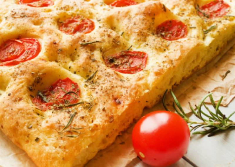 Συνταγή για ένα κλασικό ιταλικό ψωμί αρωματισμένο με δενδρολίβανο, τοματίνια και ελαιόλαδο.