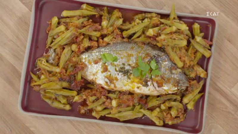 Συνταγή για τσιπούρα με μπάμιες στον φούρνο μέσα από την εκπομπή "Ώρα Για Φαγητό με την Αργυρώ".