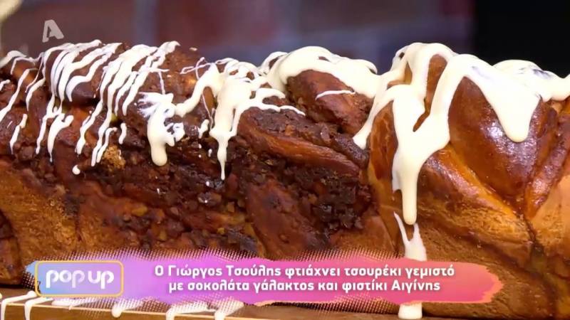 Ο σεφ Γιώργος Τσούλης έφτιαξε υπέροχο γεμιστό τσουρέκι με σοκολάτα γάλακτος και φιστίκι Αιγίνης για να περάσουμε ένα “γλυκό”… Σαββατοκύριακο!
