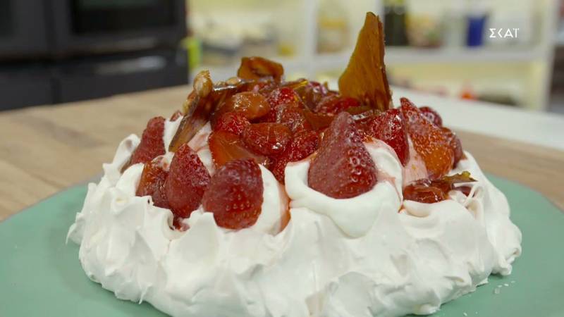 Πάβλοβα με κρέμα και φράουλες μέσα από την εκπομπή "Ώρα Για Φαγητό με την Αργυρώ".