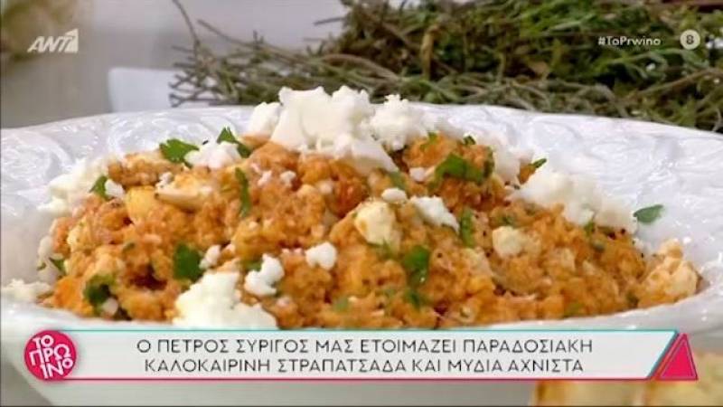 Ο Πέτρος Συρίγος ετοίμασε στην εκπομπή "Το Πρωινό" καλοκαιρινή στραπατσάδα με μύδια αχνιστά.