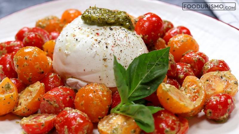 Moτσαρέλα, ντομάτα, βασιλικός.