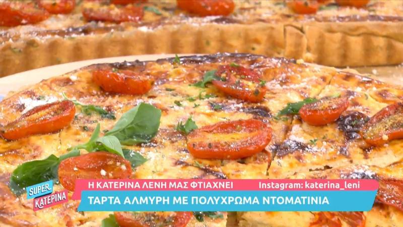 Η Κατερίνα Λένη μάς δείχνει πώς να ετοιμάσουμε τάρτα αλμυρή με πολύχρωμα ντοματίνια, εύκολα και γρήγορα.