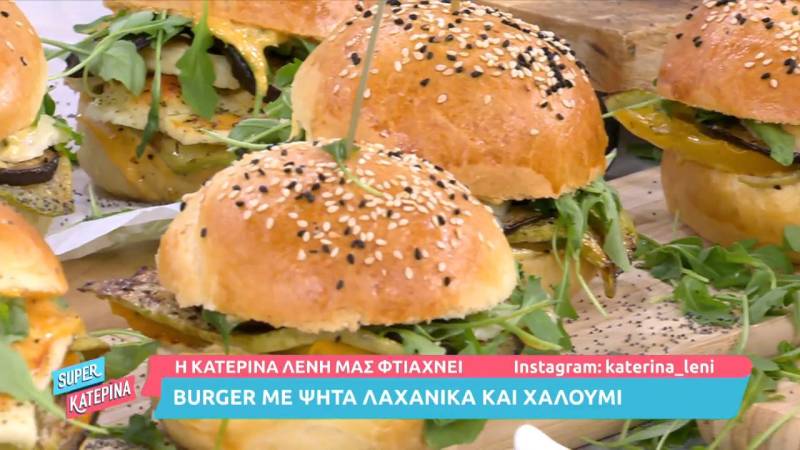 Συνταγή για burger με ψητά λαχανικά και χαλούμι μέσα από την εκπομπή "Super Κατερίνα" και τη Κατερίνα Λένη.