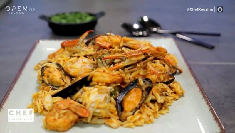 Ο Βαγγέλης Δρίσκας φτιάχνει γιουβέτσι θαλασσινών.