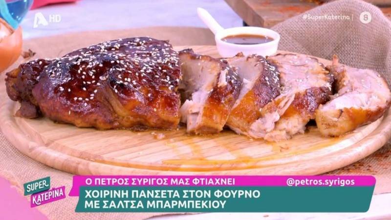 Ο Πέτρος Συρίγος μάς ετοιμάζει χοιρινή πανσέτα στον φούρνο με σάλτσα μπάρμπεκιου.