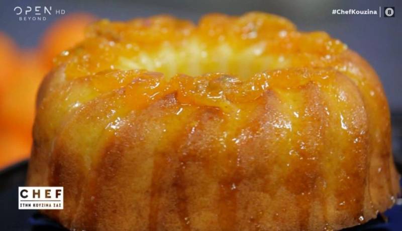Ο Βαγγέλης Δρίσκας μαγειρεύει φρεσκότατο κέικ με γλάσο μανταρίνι.