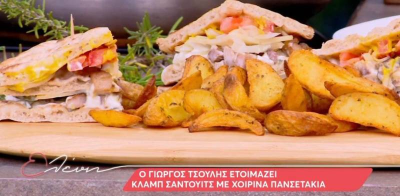 Ο Γιώργος Τσούλης ετοιμάζει κλαμπ σάντουιτς με χοιρινά πανσετάκια.