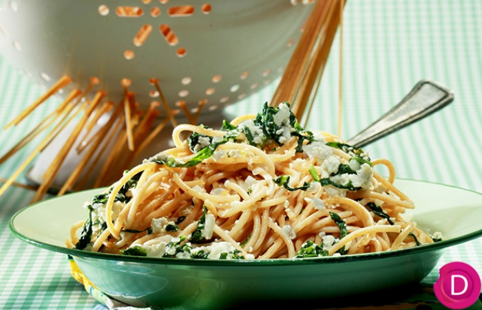Βράζω τα σπαγγέτι «αλ ντέντε» σε άφθονο αλατισμένο νερό, ακολουθώντας τις οδηγίες βρασμού που αναγράφονται στη συσκευασία τους. Τα στραγγίζω, αφήνω κατά μέρος 200 ml από το νερό τους, και τα διατηρώ ζεστά.