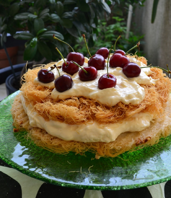 Τούρτα Κανταΐφι Με Κρέμα Τυριού Και Kεράσια για το ΣΚ!!!