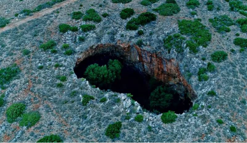Οι κάθετοι "τοίχοι" του προκαλούν δέος και χάρη σ' αυτούς και το μεγάλο βάθος που έχει, δημιουργούνται οι ιδανικές συνθήκες για ένα μικρό δάσος στο εσωτερικό του. Η υγρασία που παγιδεύεται εκεί και η ελάχιστη ηλιοφάνεια που μπαίνει στο βάραθρο τροφοδοτούν τα μοναδικά στην περιοχή δέντρα ώστε να έχουν ευδοκιμήσει και να ανταγωνίζονται ποιο θα μπορέσει να βρει πρώτο πάνω από την επιφάνεια του εδάφους.
