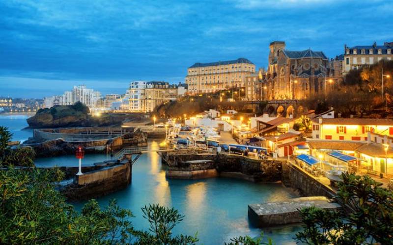 Διάσημοι επισκέπτες και σέρφερ απ’ όλο τον κόσμο και μεγαλοπρεπή κτίρια συνθέτουν το παζλ του κοσμικού γαλλικού θερέτρου στα σύνορα με την Ισπανία. Με μεγάλες αμμώδεις παραλίες και βασκικές γεύσεις αποτελεί ιδιαίτερο προορισμό για τον ταξιδιώτη.