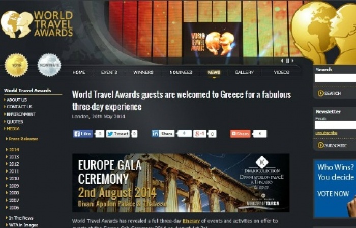 Στην Αθήνα από 1 έως 3 Αυγούστου θα πραγματοποιηθεί η απονομή των παγκόσμιων βραβείων τουρισμού, σύμφωνα με ανάρτηση στο siteτου οργανισμού WorldTravelAwards.