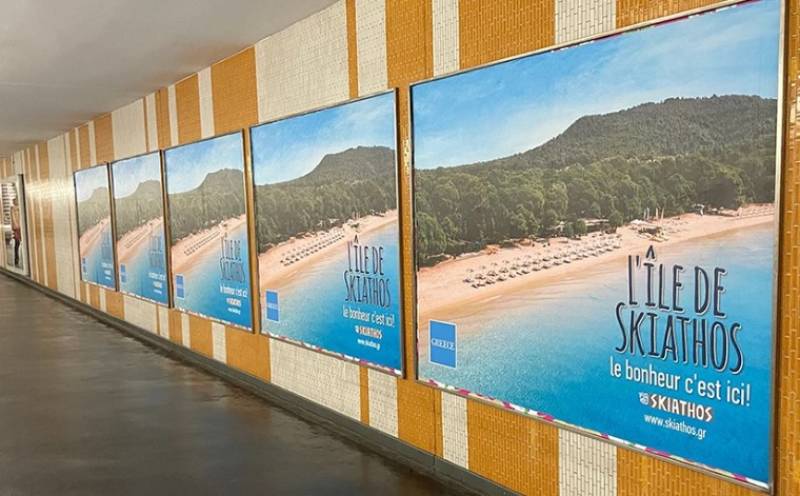 Ήδη, το καταπράσινο νησί των Σποράδων με τις χρυσές αμμουδιές προβάλλεται συστηματικά στο μετρό του Λονδίνου για τέταρτη συνεχή χρονιά και για δεύτερη συνεχή χρονιά στο μετρό του Παρισιού.